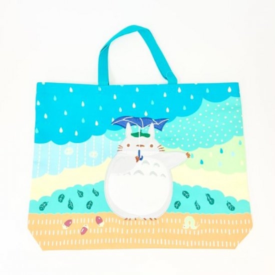 雨の中傘をさしているトトロのイラストがキュートな、ナップサックです。幼稚園や小学校などの通園や通学にお役立ちで、体操服入れなどに使えます。
