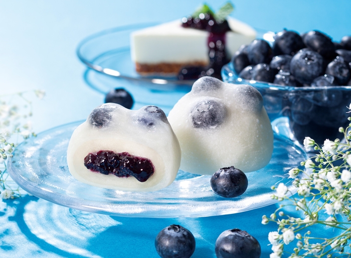 6月は大粒の国産ブルーベリーの弾ける食感を味わう!フランス産クリームチーズをたっぷり使用したチーズあんで果実入りブルーベリージャムを包み、柔らかい羽二重餅でひとつひとつ手包みした『手包みブルーベリーチーズ大福』(1個270円(税込)・常温販売)を東京・自由が丘にある総本店をはじめ直販28店舗(東京・神奈川)にて販売いたします。