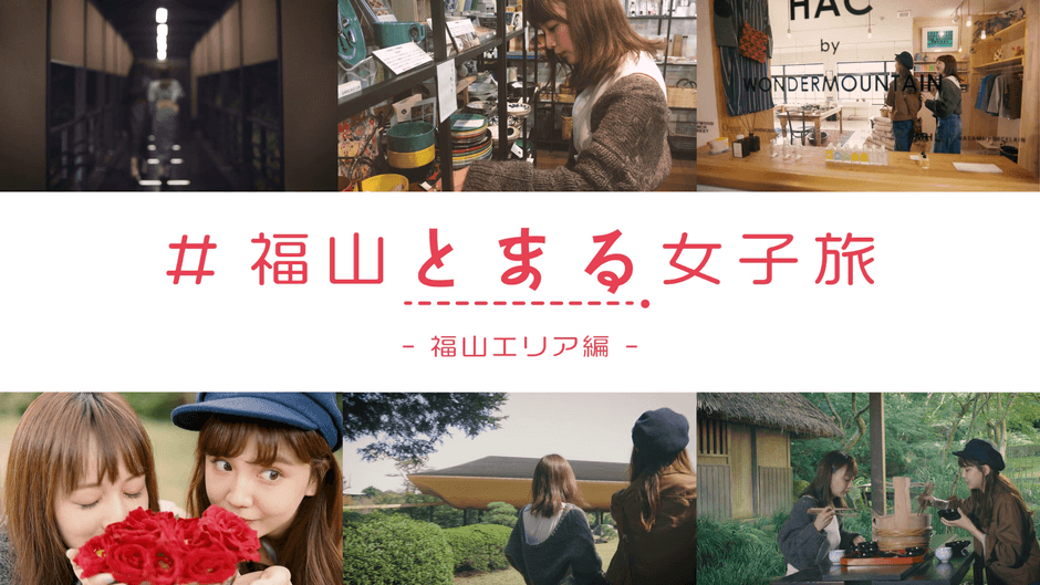 動画は「広島県 #福山とまる女子旅 [DAY1]福山エリア編」と「広島県 #福山とまる女子旅 [DAY2]鞆の浦エリア編」の2本あります。