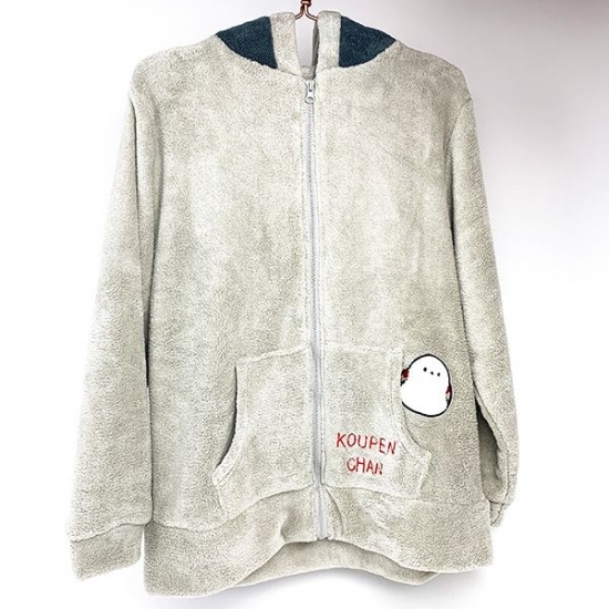 ふわもこぬくぬくのコウペンちゃん着ぐるみパーカーが新発売!肌寒い時にサッと羽織ったり、真冬にはパジャマにしたりと用途色々♪実用性の高い便利なお洋服ですよね☆フードはコウペンちゃんになっているので、かぶるとコウペンちゃんになれちゃう!?ポケットにはチラっと覗く邪エナガさんが!ふわもこあったかでおうち時間もコウペンちゃんと一緒♪