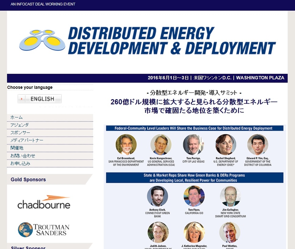 会議:「Distributed Energy Development & Deployment-分散型エネルギー開発・導入サミット」