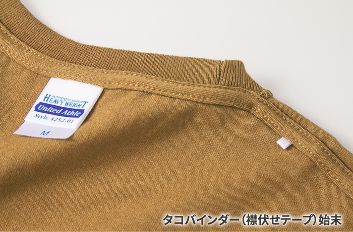 超肉厚7.1オンスのこのTシャツは、「オープンエンド糸」というザラ感のある糸を使用し、アメリカンクラシックな雰囲気をまとったまさに「オーセンティック」な一枚。肉厚な生地は、着れば着るほどなじみ、豊かな表情と味わいが楽しめます。