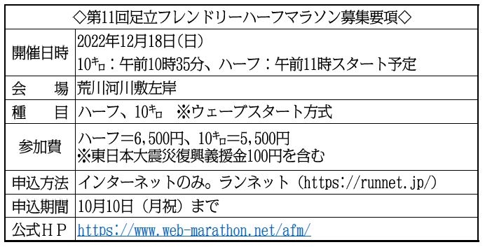 足立フレンドリーハーフマラソン大会HP:https://www.web-marathon.net/afm/