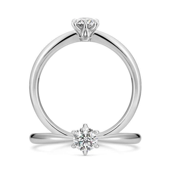 既存の人気デザイン『カテリーナ』の魅力をそのままに、石座の高さを低く設計して普段使いしやすさをアップしたデザインです。石座を低くしてもダイヤモンドの存在感が美しく引き立つよう、センターへ向かって絞るようなフォルムのアームがポイント。幅や厚みなど細部までこだわり、王道のソリテールリングのフォーマル感と、身に着けやすさを両立しています。
