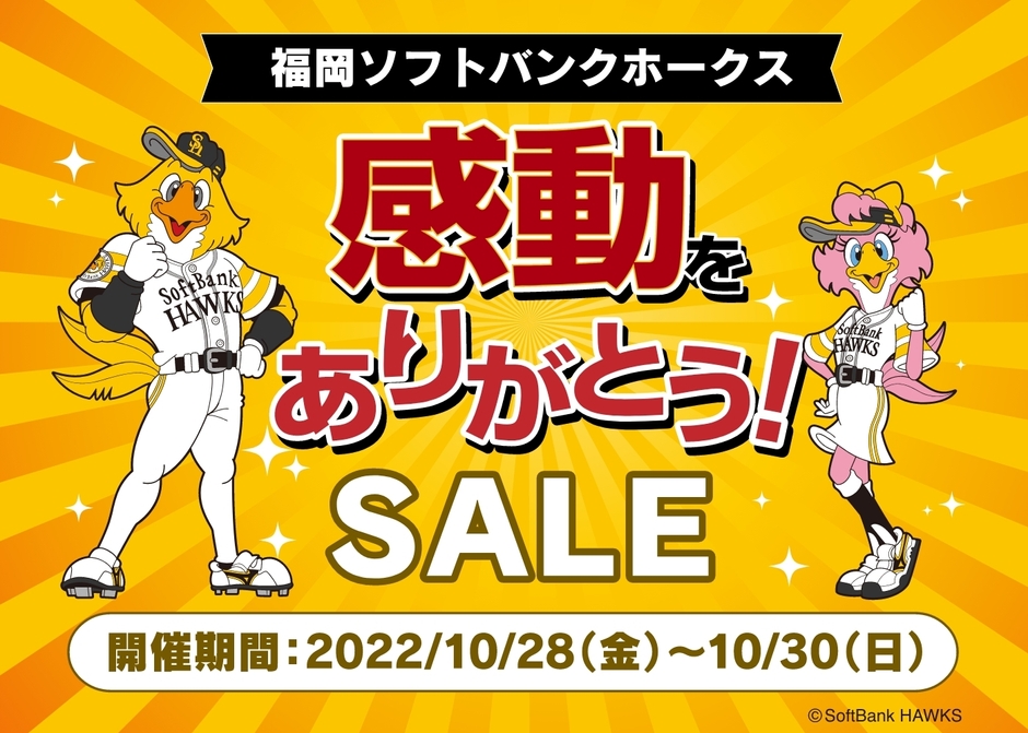 福岡ソフトバンクホークス感動をありがとう!SALE 10月28日(金)~30日(日)の3日間 開催!