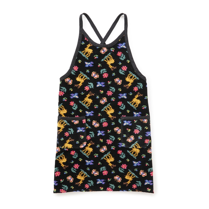 生地のよさをたっぷりと楽しめるエプロン。フロントには2 つのポケットつきです。