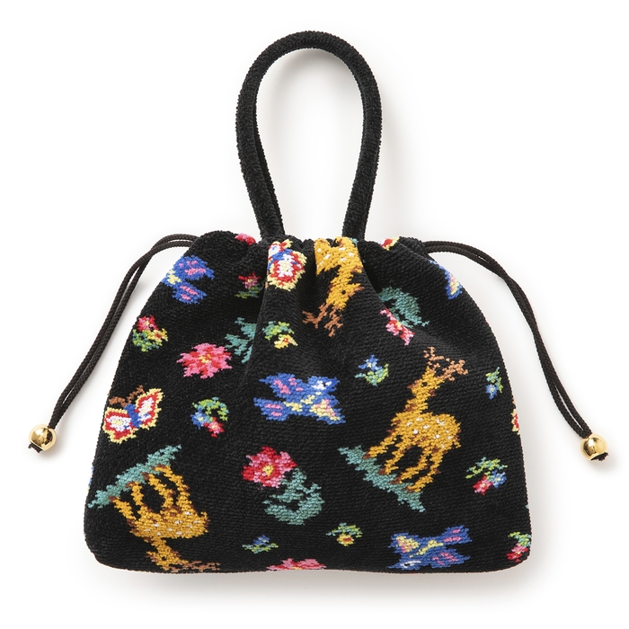 愛らしい巾着型のバッグ。バッグインバッグとして散らかりがちな小物の収納にも。