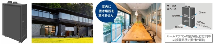 1.業界初の屋外設置仕様で、室内スペースに余裕がない場所にも設置可能