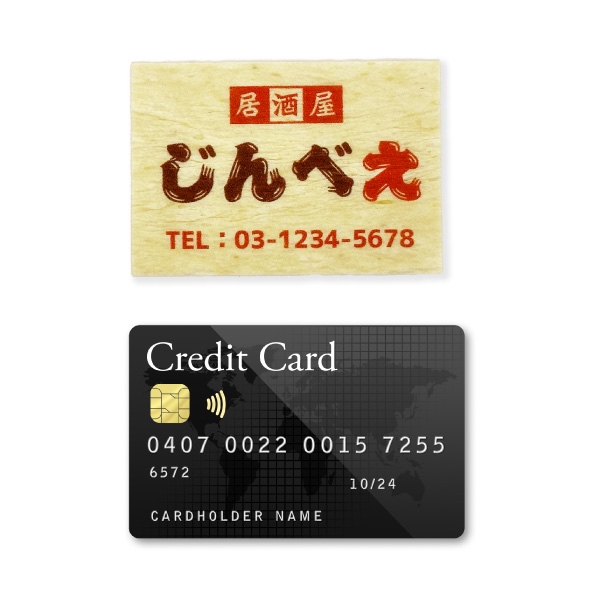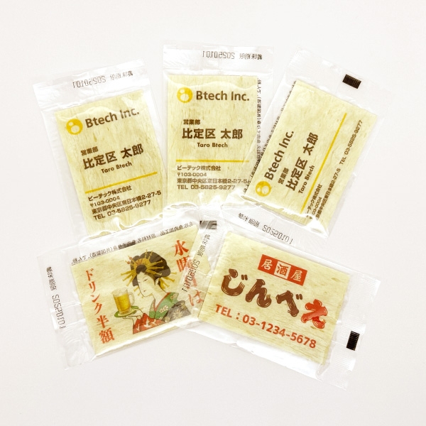 「オリジナル 珍味カードサイズ焼きかま」は、そのままお店に持参いただいてクーポン券としてもご利用いただけます。飲食店やカフェなどでのプロモーションアイテムとして、お客様の記憶に残るユニークなノベルティを提供します。