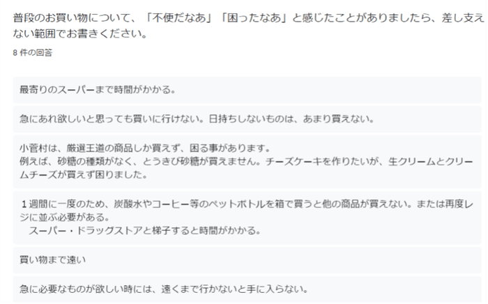 山梨県にある小菅村は大手配送会社各社の配達限界エリアの一つであり、荷物の配達頻度や回数などに課題を抱えています。住民からも「(普段の買い物では)定番の商品しか買えず、困る事がある。」「最寄りのスーパーまでに時間がかかる。」など、新商品が欲しいと思った時にすぐに買いに行けない、という声がありました。