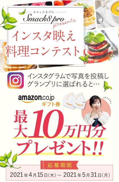 家でごはんを食べることが多い今、Instagramで「#おうちごはん」や「#レシピ」を検索する方が増えています。そこで、Instagramの投稿促進を兼ねたスマックエイトプロの発売記念として、本コンテストを企画しました。是非多くの方に参加していただき、おうちごはんを楽しんでいただければと思います。