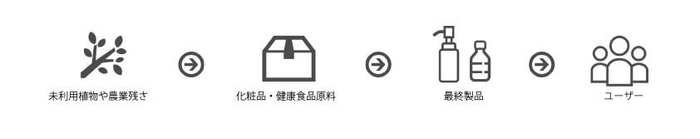 スキンケアやシャンプーなどに採用されているので、当社の原料が配合されている製品をご使用いただけると自然とアップサイクルや地方創生に参加出来るという仕組みです。