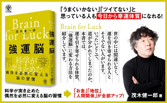 株式会社かんき出版(本社:千代田区 代表取締役社長:齊藤龍男)は、『強運脳』(茂木健一郎/著)https://kanki-pub.co.jp/pub/book/details/9784761276829を2023年7月20日より全国の書店・オンライン書店等(一部除く)で発売いたします。