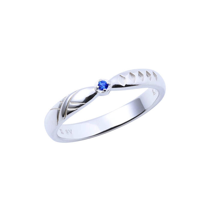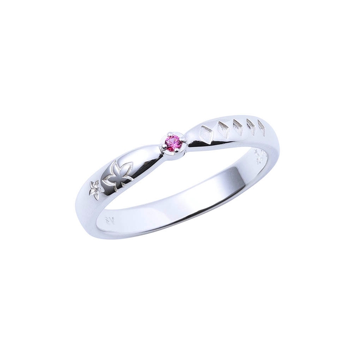 甲丸のストレートタイプのリングに髪飾りをモチーフとして取り込み、イメージカラーストーンをセット。内側には名前を刻印しました。