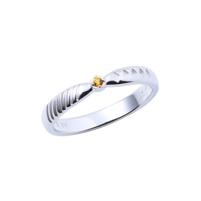 甲丸のストレートタイプのリングに、体に巻かれている包帯をモチーフとして取り込み、イメージカラーストーンをセット。内側には名前を刻印しました。