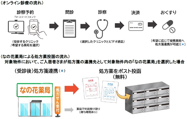 ―マンション内で完結、 暮らしと医療をつなぐスキーム提供― 診察はオンライン、 お薬は最短当日中に送料無料でポストに投函