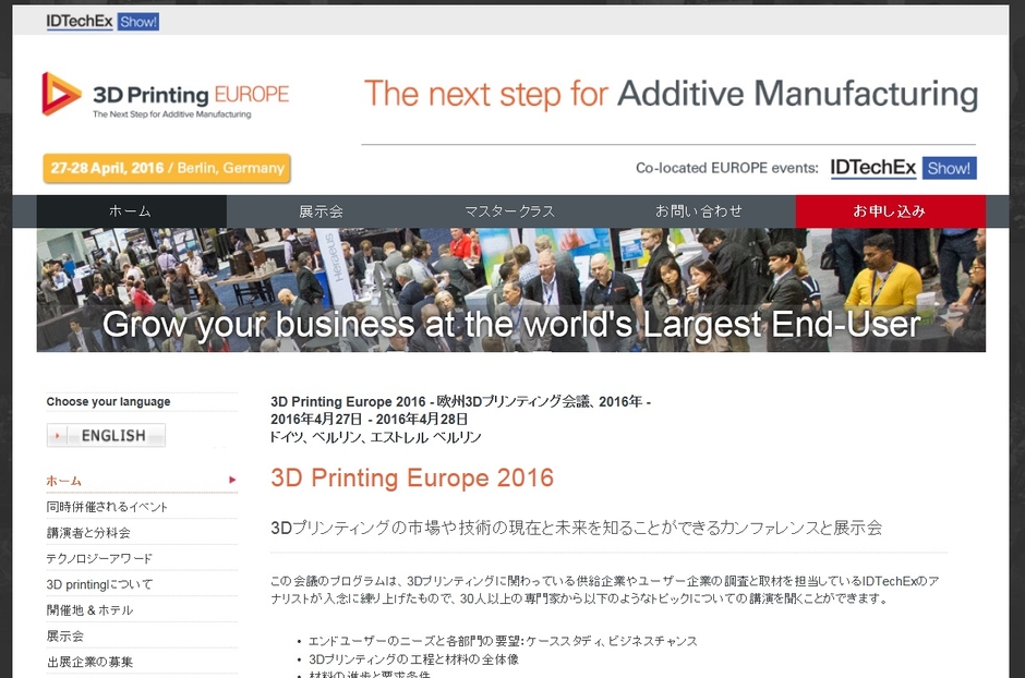 会議:「3D Printing Europe 2016 - 欧州3Dプリンティング会議 2016年」