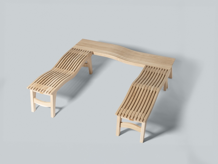 東川町の広葉樹ナラ材を使い、安心感のある、座り心地のいいベンチを作ることを目指しました。訪れる方に、広葉樹のベンチで過ごす心地よい時間を感じて頂けたらと思います。公園の公共性を考慮し、使用される方が座高を選べる座面をデザインしました。風雨に耐えられるよう、接着材はなるべく使用せず、ボルトでの接着構造を採用しました。