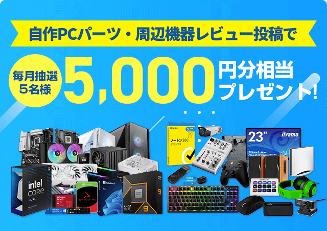 ◇ 自作PCパーツ・周辺機器の購入レビュー投稿で、毎月抽選で5名様に5,000円分相当のWEBポイントプレゼント