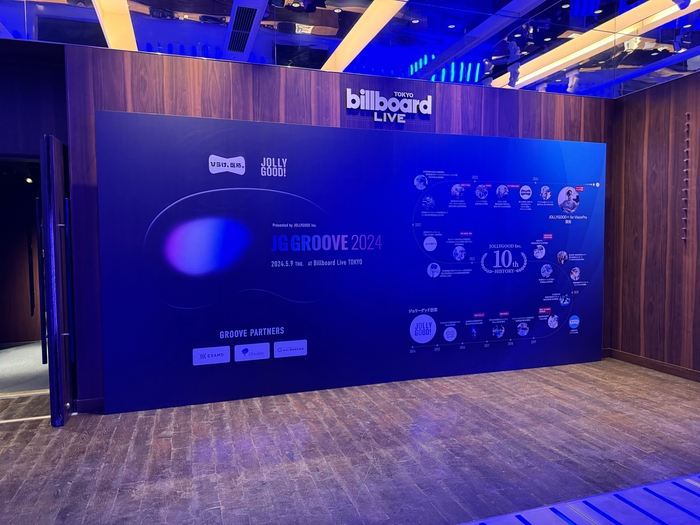 2024年5月15日に創業10年を迎えるジョリーグッド。エントランスにはフォトスポットとして、イベントのキービジュアルに、創業の歴史を振り返る年表をあしらいました。