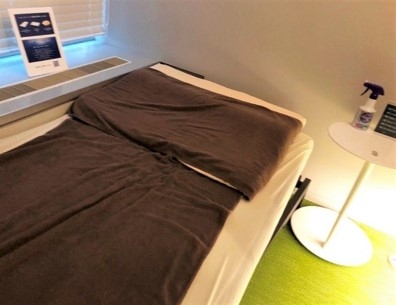 本実証実験では、共同研究で効果を確認した温熱制御が、実際のオフィス環境においても有効性を持つことを確認します。『point 0 marunouchi』の仮眠ブースに置かれたベッドに睡眠状態を検知する圧電式のバイタルセンサー※5を設置するとともに、睡眠状態に応じて既存の空調機の設定温度を制御する「仮眠体験システム」を構築し、仮眠ブースの一般利用者を対象に仮眠前後のアンケート結果をもとに実空間での有効性を評価します。
