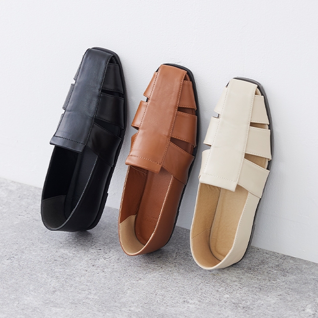 かかと部分をなくし、気軽にさっと履けて出かけられる日常使いしやすいデザイン。