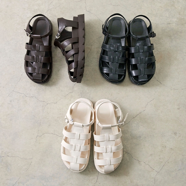 大きめの編み込みデザインが特徴的なグルカサンダル