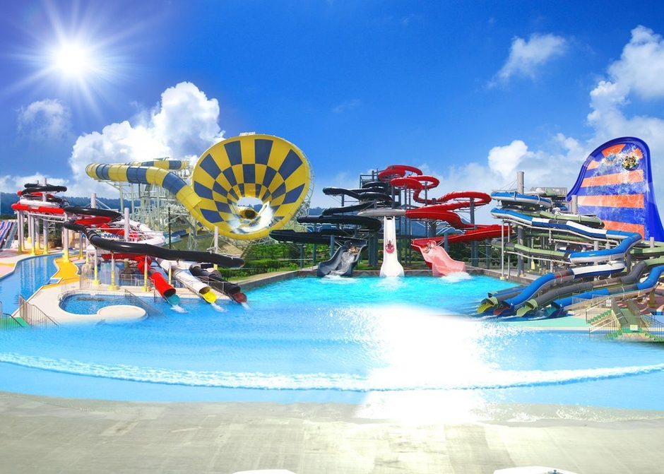 芝生に囲まれ、日本海を眺めながら泳ぐことのできるプールは日本最大級のスケールを誇ります。流れるプールや波の出るプール、大小50本以上ものウォータースライダーが楽しめるほか、屋内プールも充実しており天候が不安定な日でも安心して遊ぶことができます。