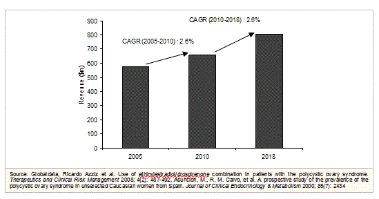 世界のPCOS市場は、2010年には6億5,600万米ドル規模でしたが、CAGR 2.6%で拡大し、2018年までに8億400万米ドルに達すると、グローバルデータは予測しています。
