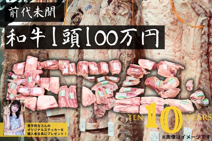 今回はこの限定商品のなかの目玉商品である、牛1頭分のお肉を100万円で販売する「和牛一頭セット」を購入頂いた飲食店舗・卸業者の皆さんのなかから、抽選で1店舗限定でタレントの雪平莉左さんが直接商品をお届けする特別企画を実施します。