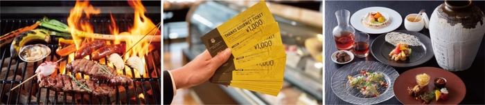 館内のレストランの飲食でご使用いただける12,000円分のチケットを、10,000円でお買い求めいただけるお得なチケットを発売しております。