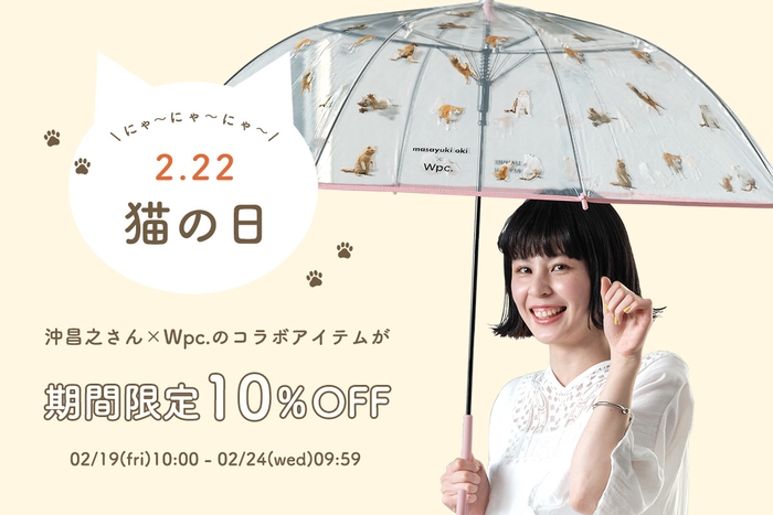 レイングッズブランド「Wpc.」を展開する株式会社ワールドパーティー(本社所在地:大阪府大阪市、代表取締役CEO:中村 俊也)は、2月22日(月)の「猫の日」にあわせて、猫写真家・沖昌之さんとコラボレーションしたビニール傘とエコバッグが期間限定で10%OFFになるキャンペーンを開催します。