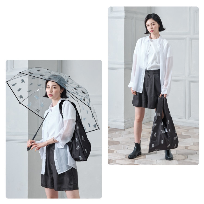 雨の日でもおでかけが楽しくなるような猫がいっぱいのビニール傘とエコバッグ。傘やエコバッグのデザインに登場している猫は、SNSの人気投票で選ばれた猫たちです。「ぶさにゃん先輩。」「チャトラ猫」「イケメン猫」の3つのデザイン展開です。
