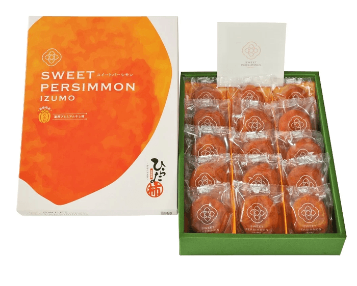 西条柿を乾燥させることによって、その甘さをさらに凝縮させながらもほどよく水分を残すことによって、和菓子の様な軟らかな口当たりに仕上げました。原料の西条柿は、県内でもトップブランドの平田地区で栽培されたものを使用しています。