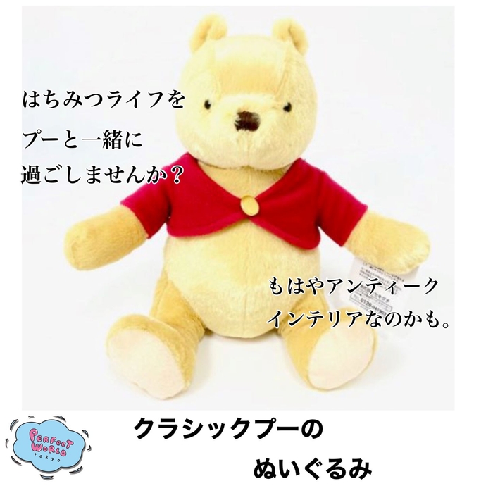 後ろ姿も愛らしいプーはいつもあなたと一緒にいます。もちろん棚に飾っても素敵に決まります。シンプルな大人の空間だってアートなお部屋にだって、ディズニーグッズがたくさん置かれているコレクションルームにだってクラシックプーのぬいぐるみはバッチリ馴染みますよ!