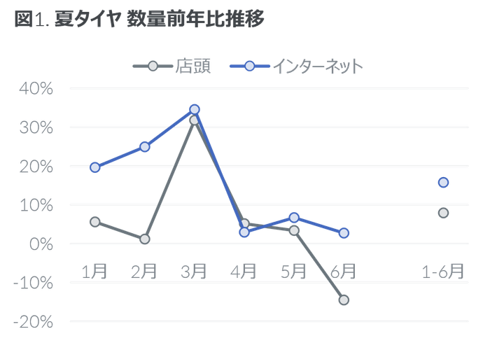 ・ タイヤは数量前年比14%増と好調で、平均価格は店頭、インターネットともに5%上昇した。