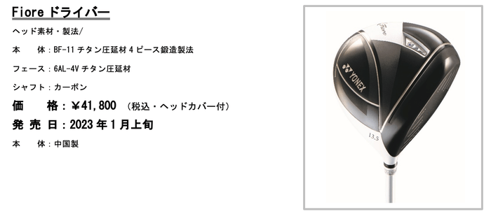 ヨネックス株式会社(代表取締役社長:アリサ ヨネヤマ)は、楽に振り切れる軽さで、もっとゴルフを楽しみたい、スコアアップを目指したい、という女性ゴルファーに向けた「Fiore(フィオーレ)」シリーズを2023年1月上旬に発売いたします。
