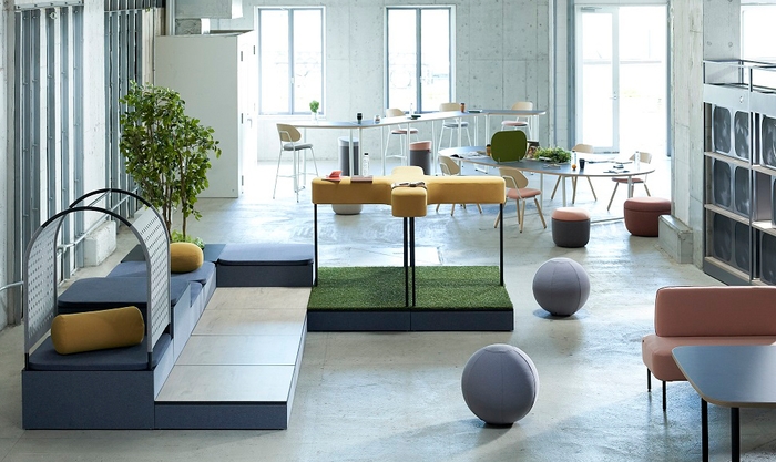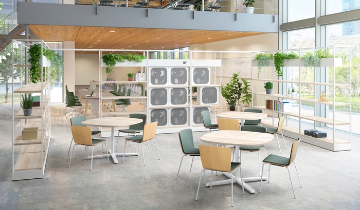※3「Lives」:オカムラの、はたらき心地を高めるオフィスファニチュアシリーズ。シェルフのほか、ワークテーブル、ワークチェア、ワゴン、パーソナルチェア&テーブル、ミーティングテーブル、ネスティングチェア、ソファ、カウンター、パネルなどをラインアップ。
