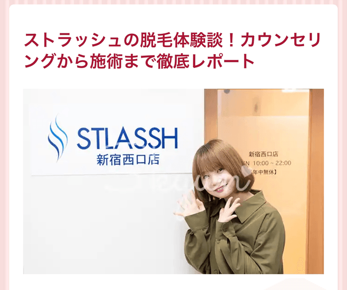 6年連続で医療関係者が選ぶ脱毛サロンランキング1位 「STLASSH」の脱毛体験レポートを「Skyun」に追加