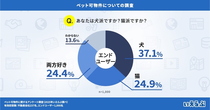 そんな中、エンドユーザーに「あなたは犬派ですか?猫派ですか?」と聞いてみたところ、犬派(37.1%)が猫派(24.9%)を上回る結果に!