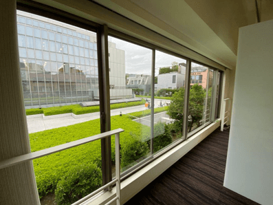 ・開放的な広い窓から見える緑