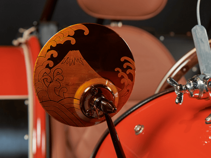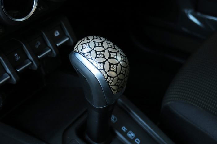 ・古都に代々伝わる紋章の一つ、「葵」から着想を得て、車内に自然を取り入れました。ドアインサートには京都の里山に射し込む木漏れ日を表現した西陣織、射し込む光をシートカバーの最高峰の技法、引箔で表現します。香りの器には葵があしらわれ、山に育成するその姿を連想させます。