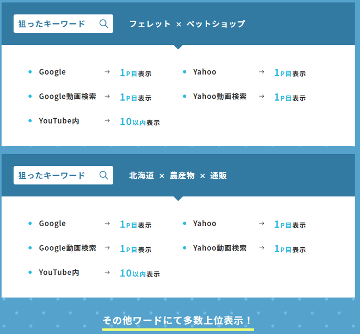 成功報酬型の動画SEO対策サービスは、当社調べでは世の中にまだ出ていないサービスです。