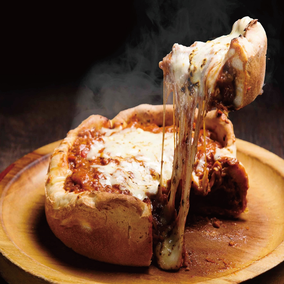 (1) シカゴピザの形状をした生地を使用する