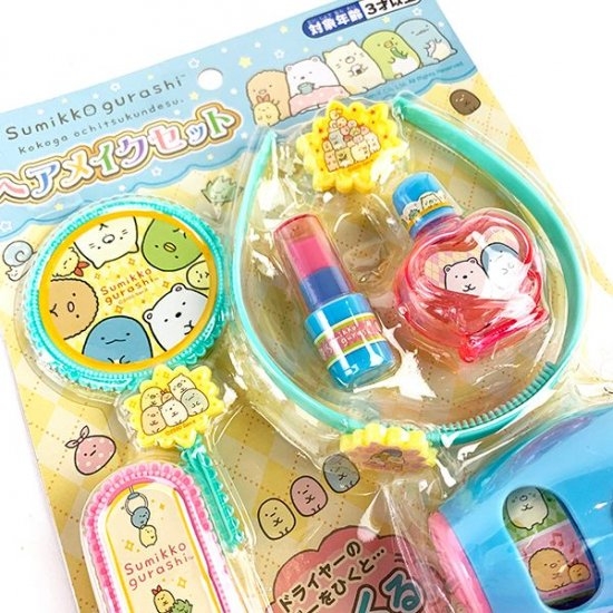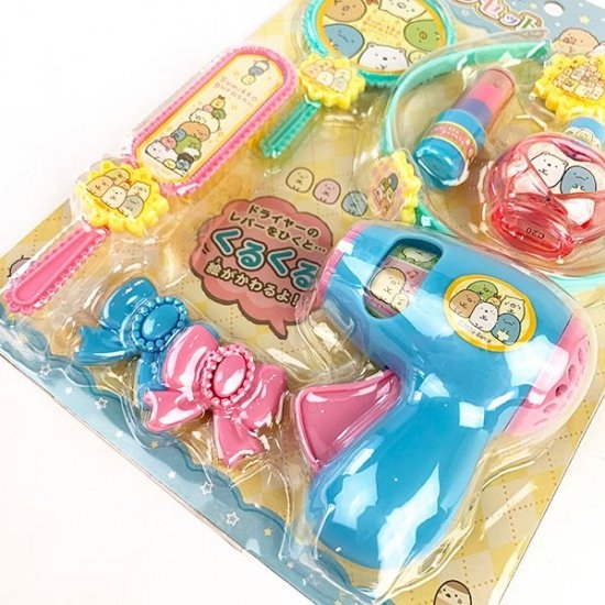 すみっコぐらしから、とってもキュートなヘアメイクセットが登場しました。ドライヤーからリップまでセットになったアイテムで、それぞれにすみっコキャラのイラストがデザインされています。ママのマネっこをしたい年頃の女の子に、超オススメですよ♪
