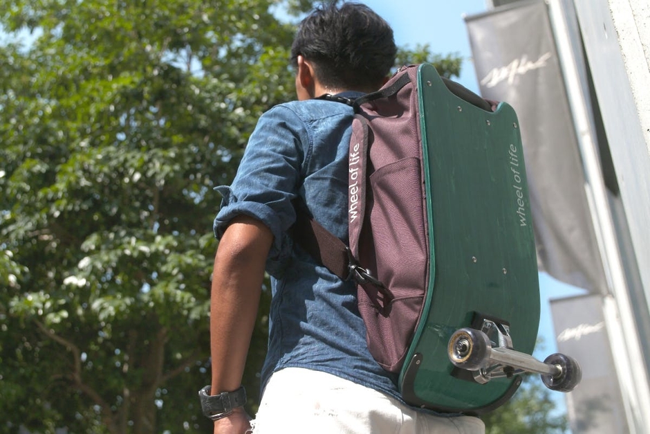 転がすだけで楽しくなる!!スケートボードをイメージした キャリーバッグ『Wheel of life』 ~クラウドファンディング初日で目標達成!!!~