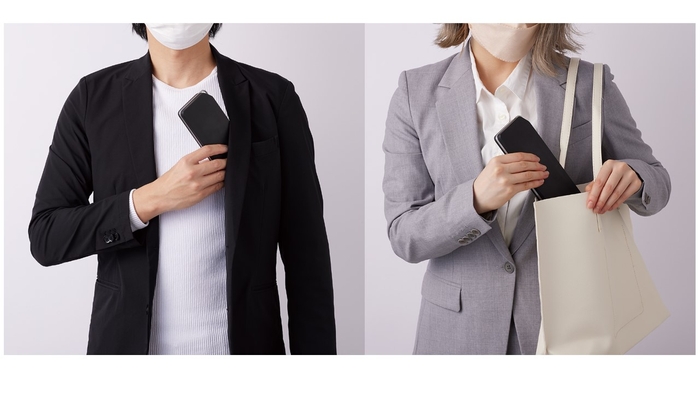 ③ ポケットや鞄に入りやすいポータブルサイズ。スタイリッシュなデザインで持ち出して何処でも除菌可能