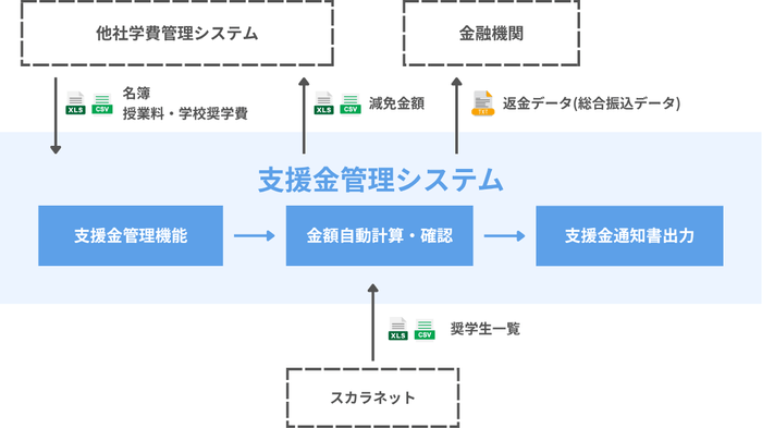既存システムとの併用ニーズに応え、修学支援新制度に対応可能な「支援金管理システム」の単独提供を実現
