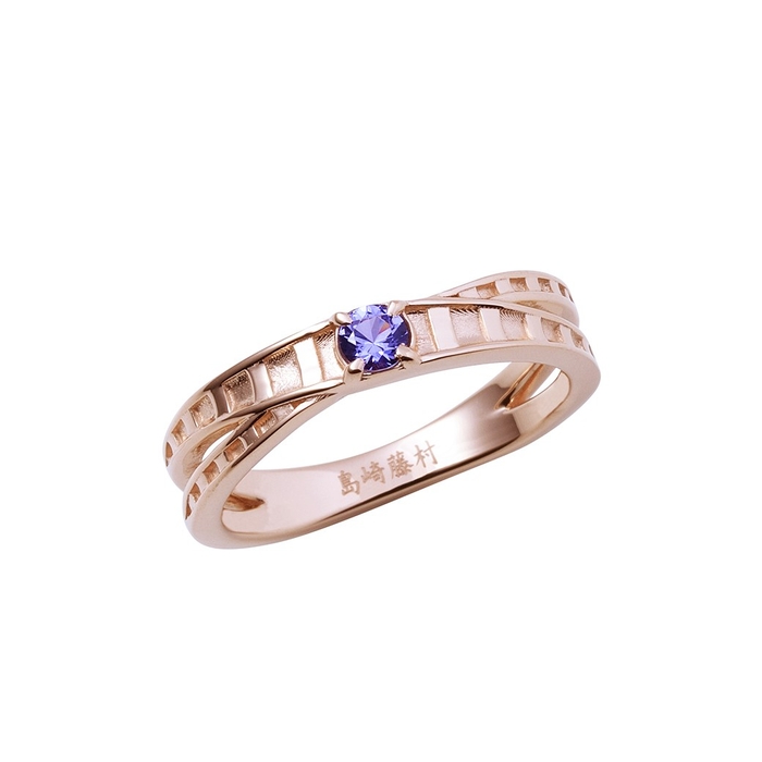 ピンクゴールドコーティングを施した表面にはイメージカラーストーン、内側には名前を刻印しました。