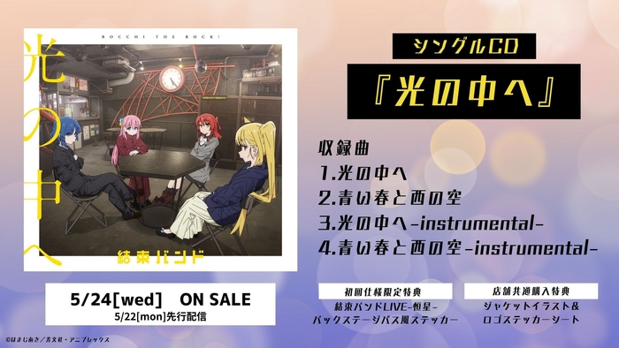 TVアニメ『ぼっち・ざ・ろっく!』のライブイベント「結束バンドLIVE-恒星-」が23年5月21日㈰に開催決定! 新曲を収録したシングルCD「光の中へ」も5月24日㈬リリース決定!